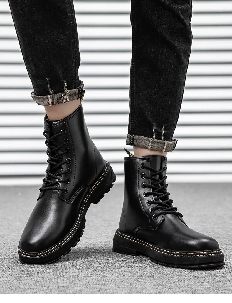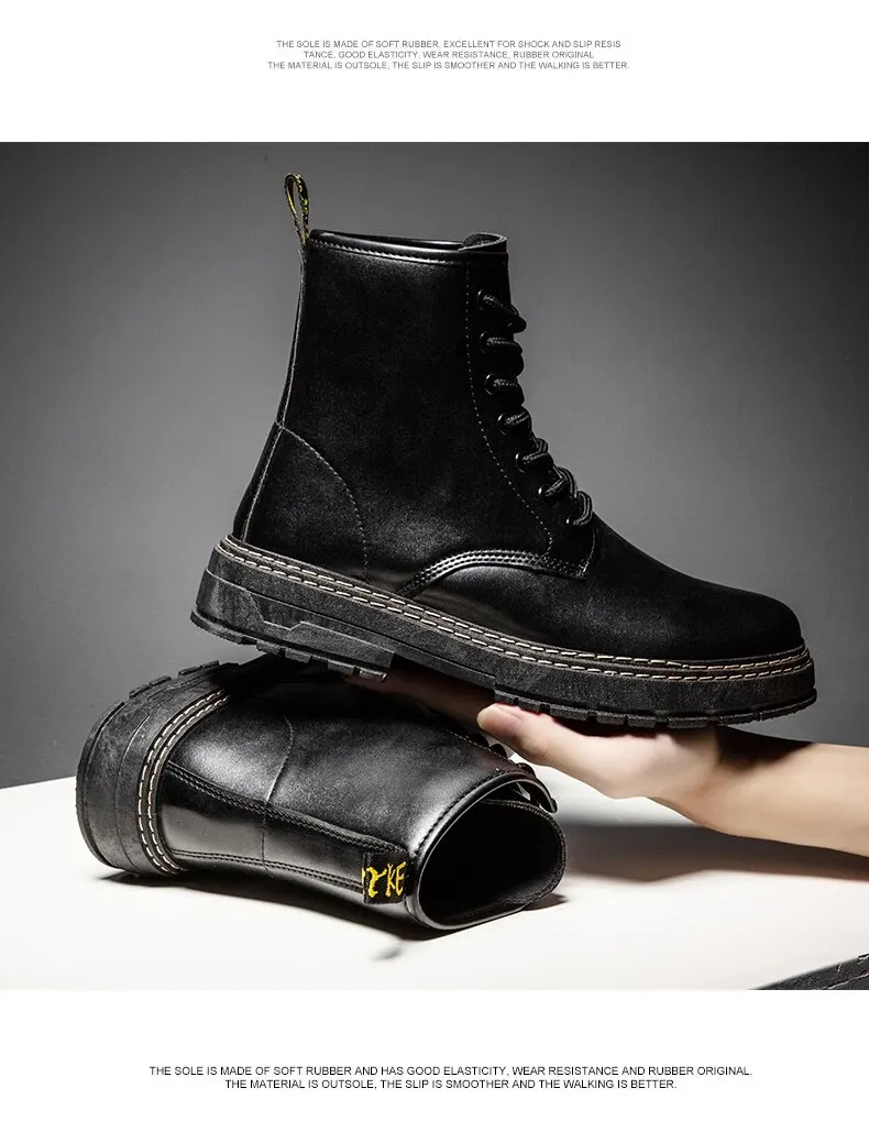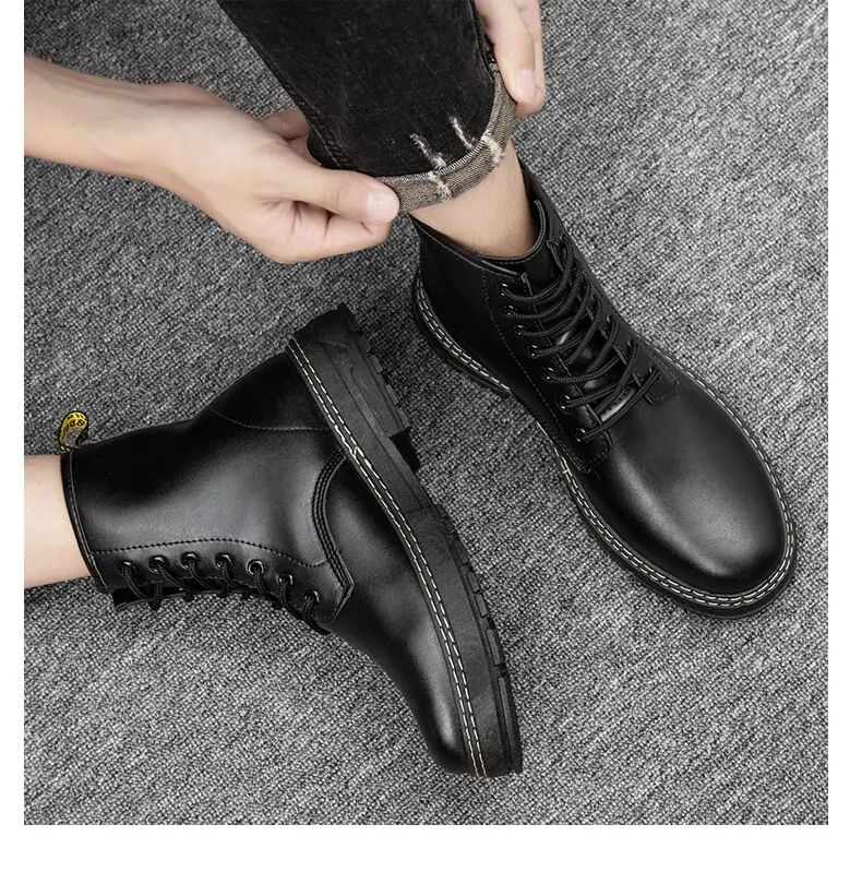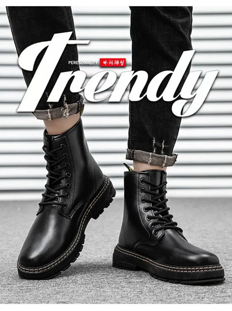 Autumn Martin Boots High Top Fashion Boots Popular Military Boots British Style Black Men's Leather Boots