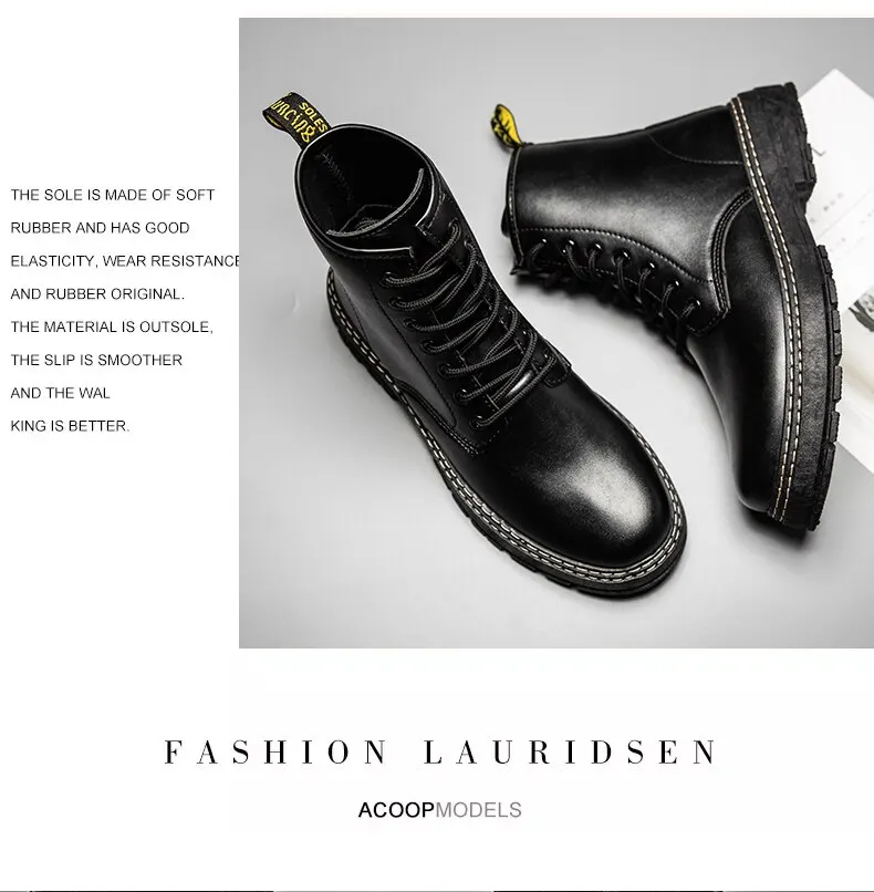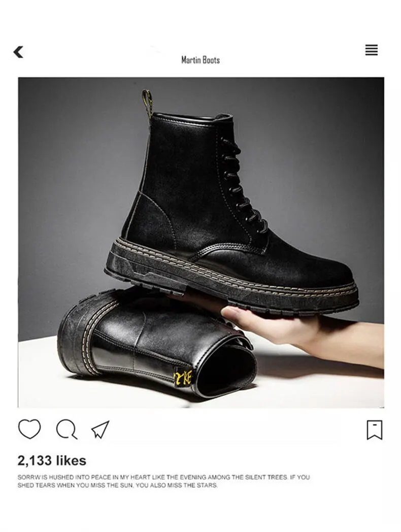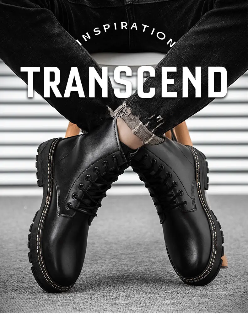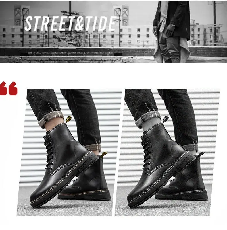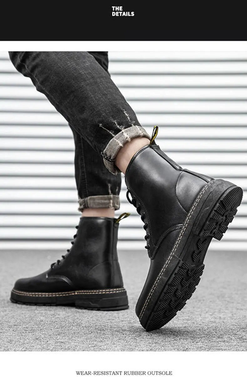 Autumn Martin Boots High Top Fashion Boots Popular Military Boots British Style Black Men's Leather Boots